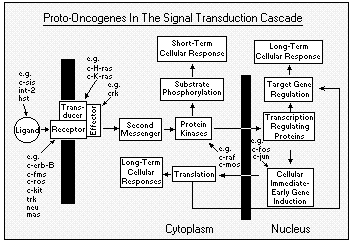 Proto-oncogenes in the signal transduction cascade. (Reproduced with permission from
