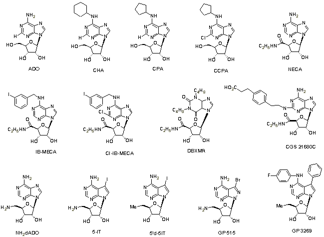 Figure 1: Structures of P1 receptor agonists and adenosine kinase (AK) inhibitors.