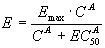 Emax is the maximum drug effect (relative to baseline), which cannot be exceeded no matter how high the drug concentration; EC50, is the concentration at which the drug effect is 50% of Emax; A is an exponent of unknown biological significance related to the "steepness" of the curve in its linear phase (Fig. 8). When applicable, this model allows quantitation of individual differences in sensitivity to a given drug, relative potencies of drugs having the same mechanism of action, and the quantitative and qualitative effects of pharmacologic potentiators or antagonists. However, not all data sets are consistent with the Sigmoid-Emax model, and it may be inappropriate or even misleading to "force" this model on data which it does not fit (17). In many cases, data from kinetic– dynamic studies can be described by an exponential function such as: