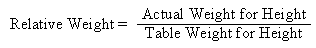 body mass index. Relative weight compares actual weight to the appropriate weight