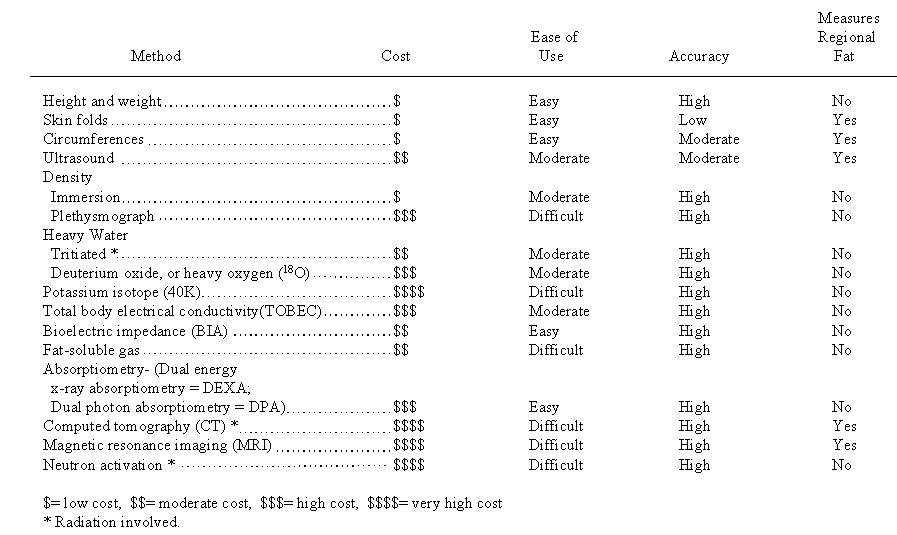 Table 1. Methods of Estimating Body Fat and Its Distribution