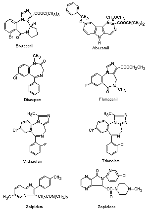 Structures of benzodiazepines and benzodiazepine-like substances.
