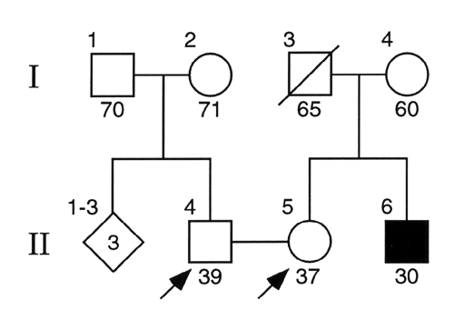 Pedigree for Case 1 (Note: the arrows indicate the consultands).