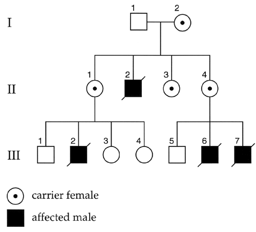 Pedigree of a family with X-linked recessive disorder.