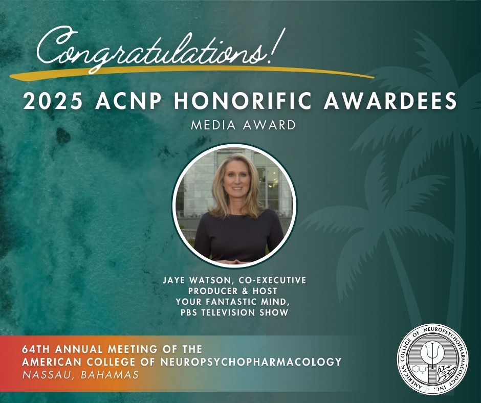Congratulations to Jaye Watson, Co-Executive Producer & Host of Your Fantastic Mind, PBS Television Show for being awarded the ACNP 2025 Media Award! 🎉